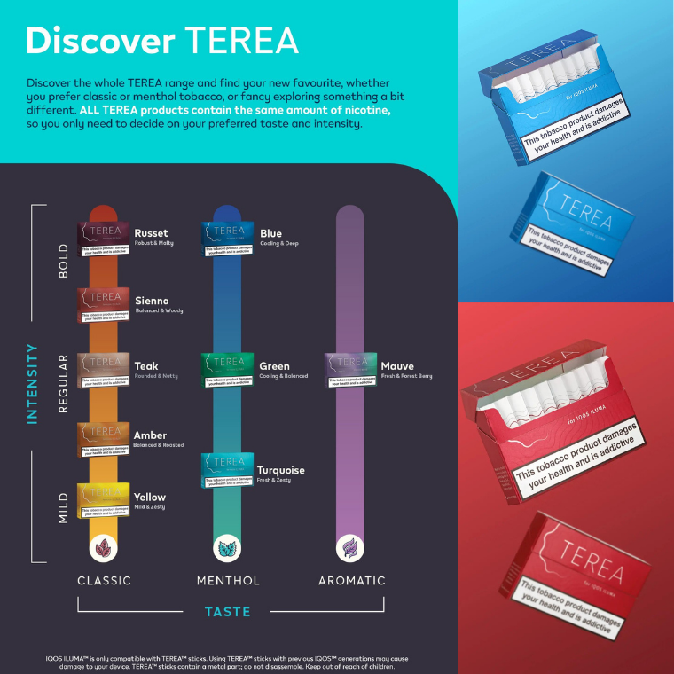 IQOS, tütün dünyasında bir devrim yaratıyor ve Casa de l'Europe, bu yeniliği Türkiye’deki müşterilerine ulaştırıyor. IQOS ILUMA ile uyumlu Terea çubukları, her damak zevkine hitap ediyor. IQOS Terea Seina, sofistike bir içim sunarken, IQOS Terea Yellow, ferahlatıcı bir deneyim vadediyor. Geleneksel tütünden vazgeçemeyenler için Terea Amber, yoğunluğuyla öne çıkıyor. Bu ürünleri tek tek ya da paket halinde satın alabilir, 1300 TL üzeri kargo bedava avantajıyla tasarruf edebilirsiniz. IQOS ile daha az koku ve dumanla tütün keyfini yaşamak için şimdi sipariş verin!